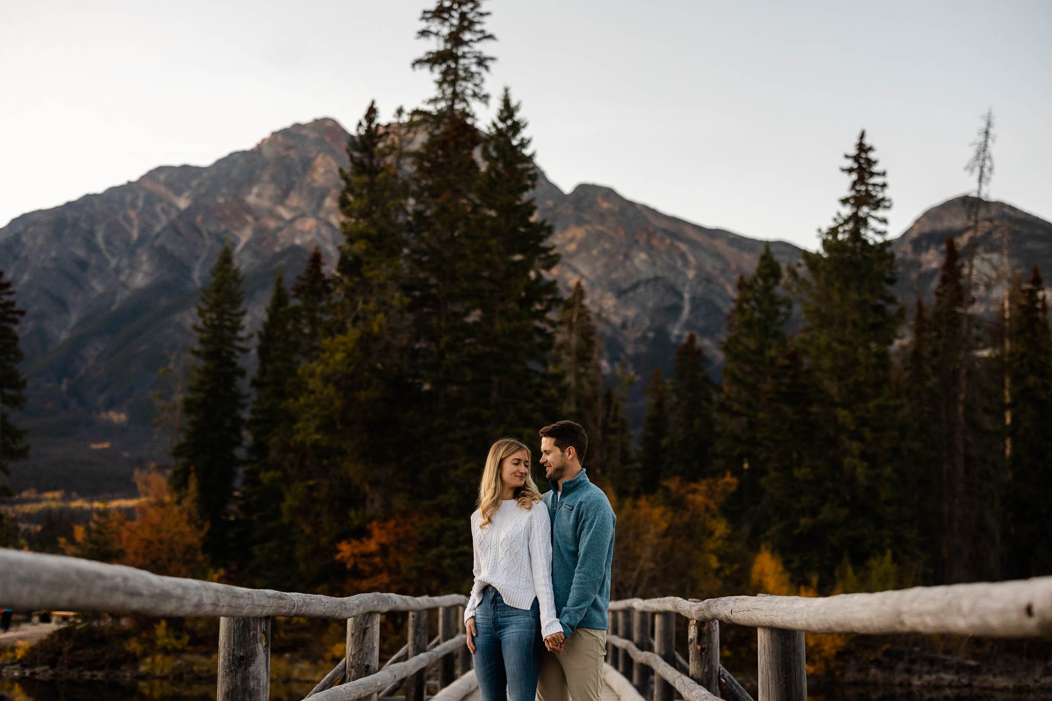 Pyramid Island is without a doubt one of the most popular places in Jasper National Park for wedding and elopement photography. The long wooden bridge out to the island has become widely recognizable over the years, popularized by countless visitors sharing their adventures on social media. But Pyramid Island has been a popular wedding and elopement venue since long before Instagram and Facebook made it big.
