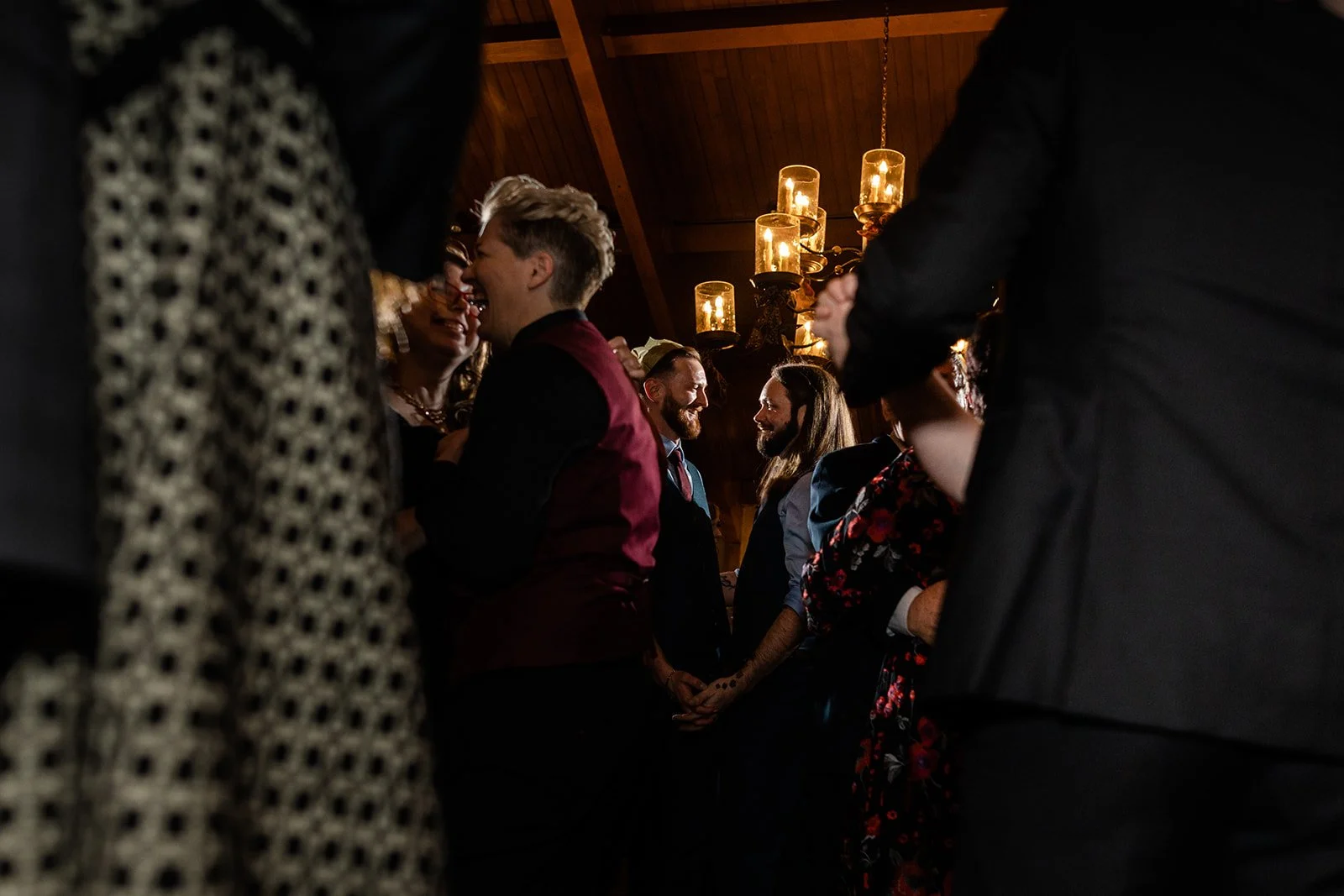 An elopement ceremony on Pyramid Island in Jasper National Park. These two travelled all the way from the United Kingdom!
